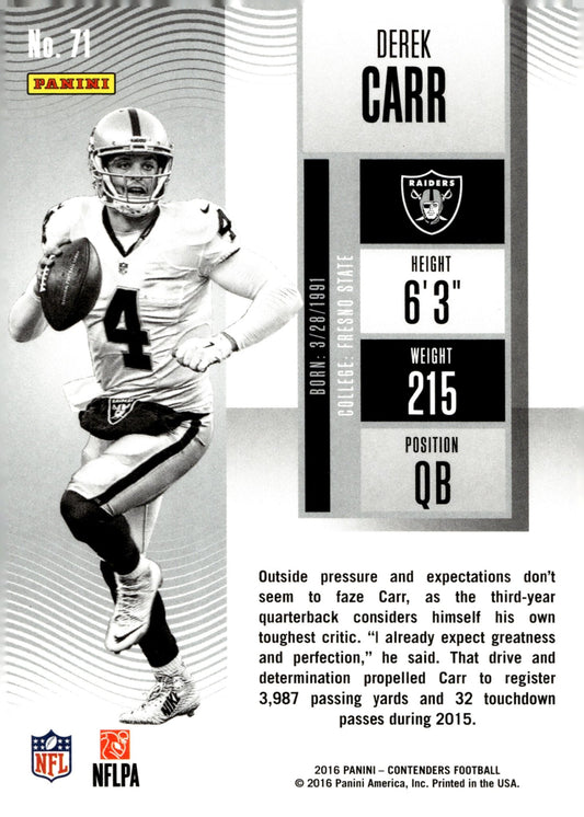 Derek Carr 2016 Panini Contenders Season Ticket #71