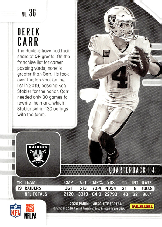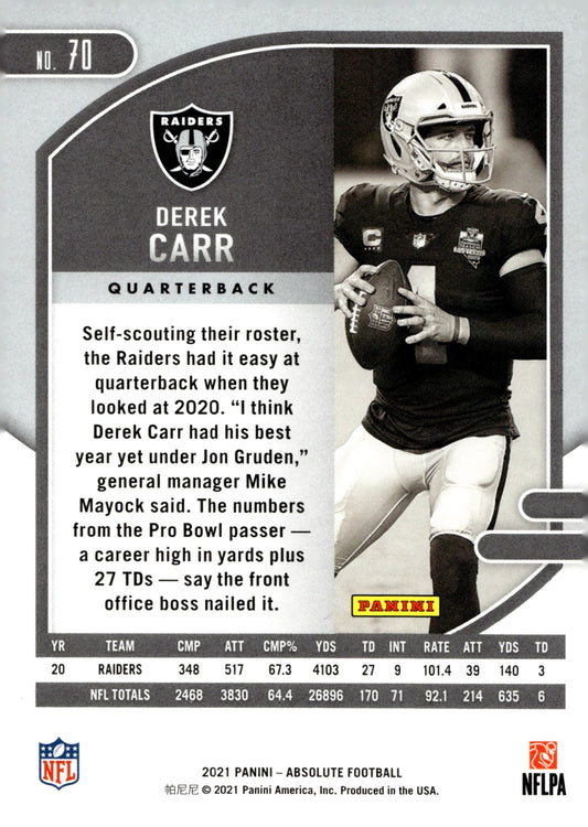 Derek Carr 2021 Panini Prestige Any Given Sunday #AGS-DC #2