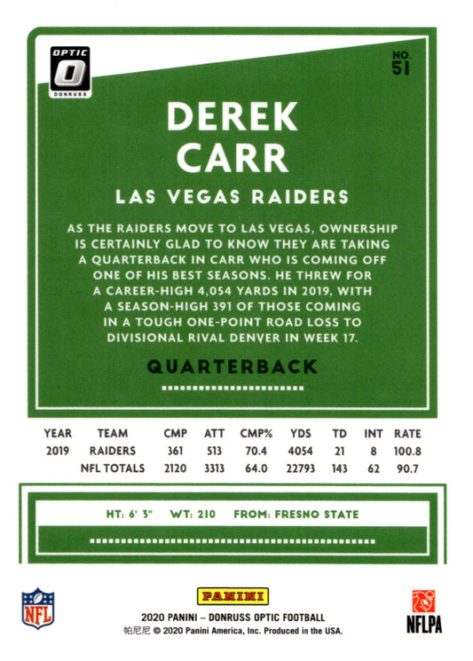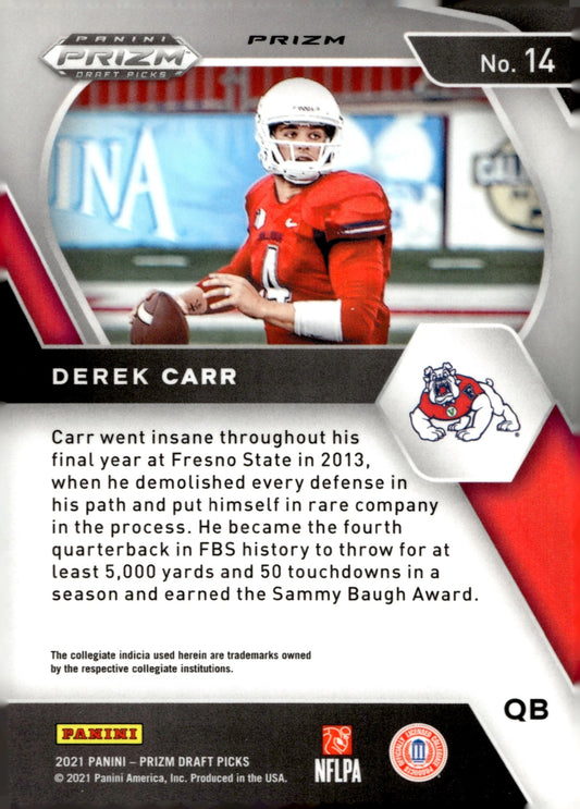 Derek Carr 2021 Panini Prizm Draft Picks Green Prizm #14