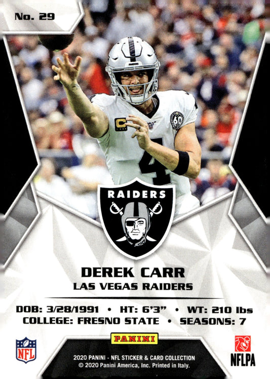 Derek Carr 2020 Panini NFL Sticker & Card Collection Blue 223/299 #29