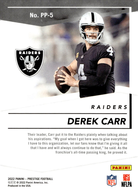 Derek Carr 2022 Panini Prestige Prestigious Pros #PP-5