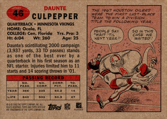 Daunte Culpepper 2002 Topps Heritage #46