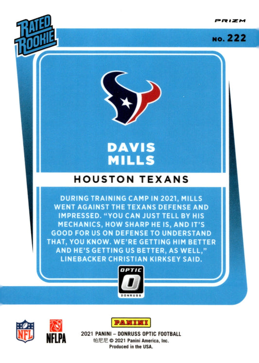 Davis Mills 2021 Panini Donruss Optic Rated Rookie Pink Prizm RC #222