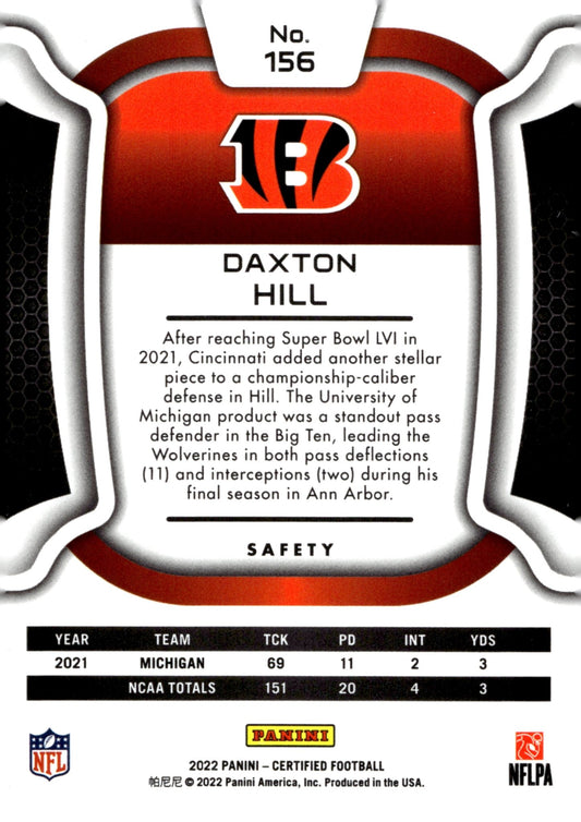Daxton Hill 2022 Panini Certified Pink Holo RC 151/199 #156