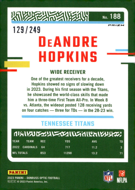 DeAndre Hopkins 2023 Panini Donruss Optic Orange Prizm 129/249 #188