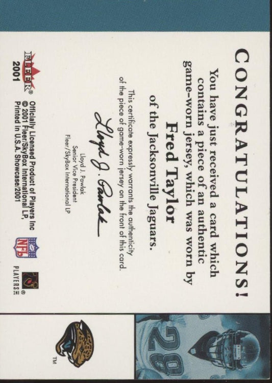 Fred Taylor 2001 Fleer Showtime Showcase Stitches Swatch Card