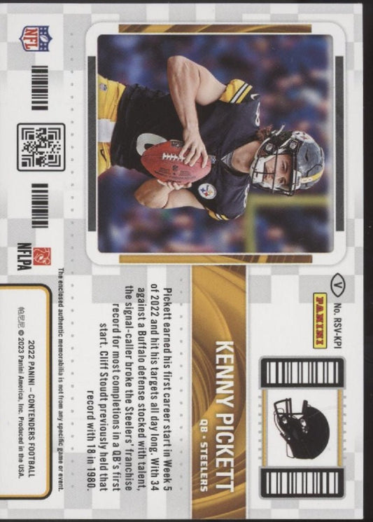 Kenny Pickett 2022 Panini Contenders Season Ticket Green Swatch RC #RSV-KPI