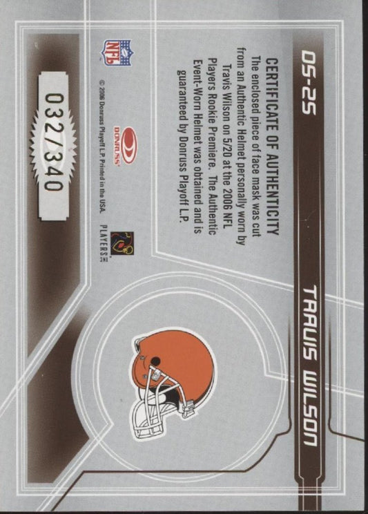Taruis Wilson 2006 Leaf Rookies & Stars Dress for Success Facemask Relic 032/340