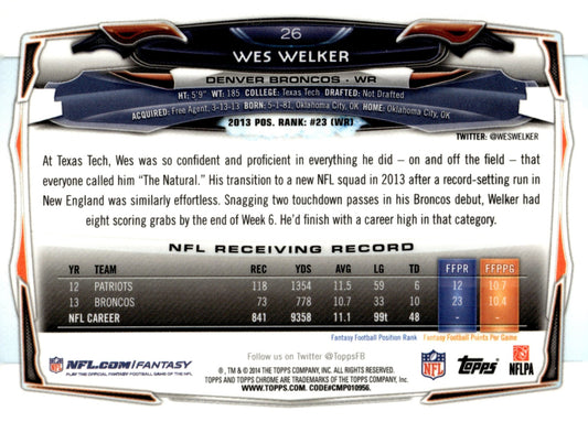 Wes Welker 2014 Topps Chrome Refractor Mini #26