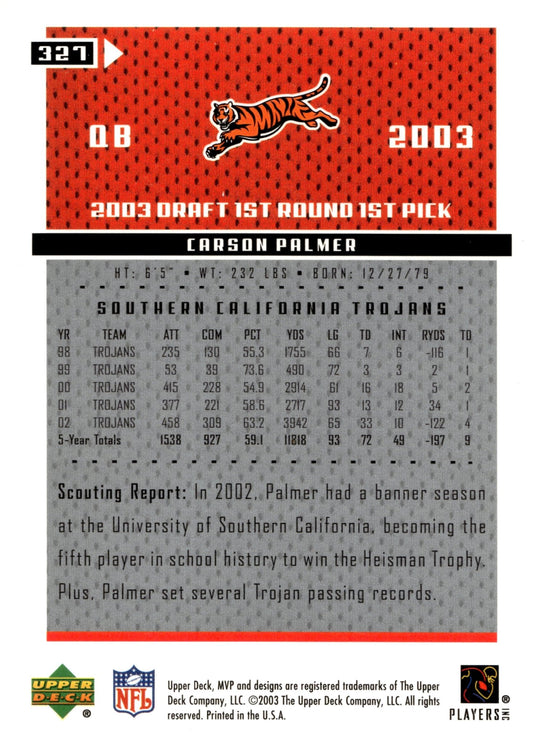 Carson Palmer 2003 Upper Deck MVP RC #327