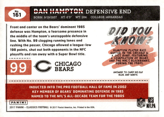 Dan Hampton 2017 Panini Classics Red Back 038/299 #161