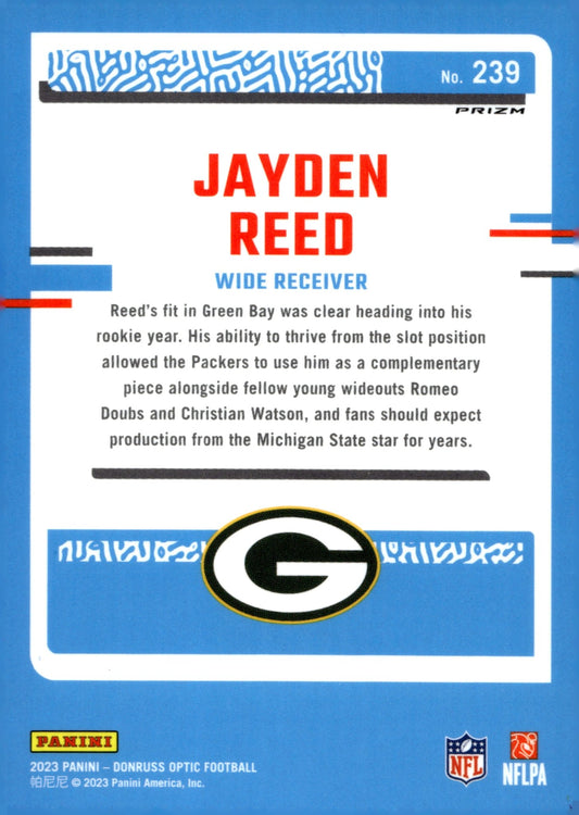 Jayden Reed 2023 Panini Donruss Optic Rated Rookie Prizm RC #239