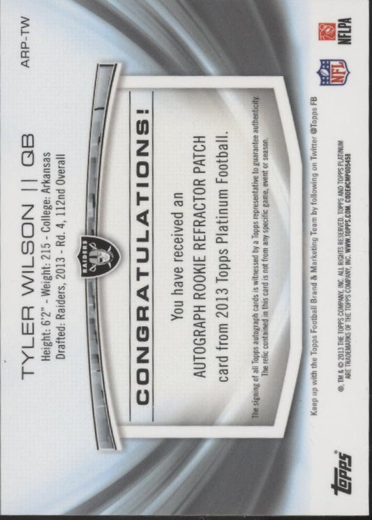 Tyler Wilson 2013 Topps Platinum Refractor Swatch RC Auto 057/125 #ARP-TW