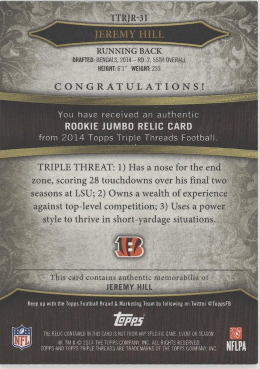 Jeremy Hill 2014 Topps Triple Threads Swatch RC 16/50 #TTRJR-31