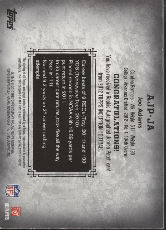 Joe Adams 2012 Topps Inception Swatch RC Auto #AJP-JA