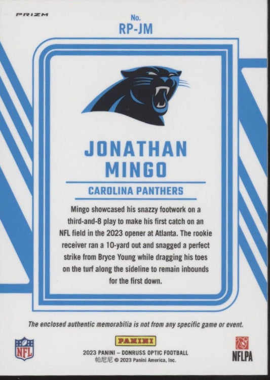 Jonathan Mingo 2023 Panini Donruss Optic Rookie Phenom Blue Prism Prizm Swatch