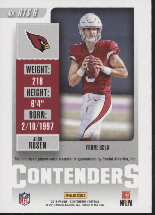 Josh Rosen 2018 Panini Contenders Rookie Ticket Green Swatch RC #RTS-6