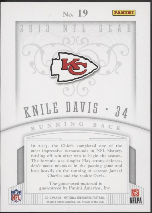 Knile Davis 2013 Panini National Treasures NFL Gear Swatch RC 39/99 #19