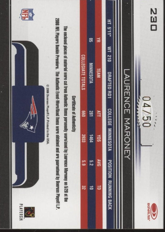 Laurence Maroney 2006 Donruss Gridiron Gear Relics 04/50 #230
