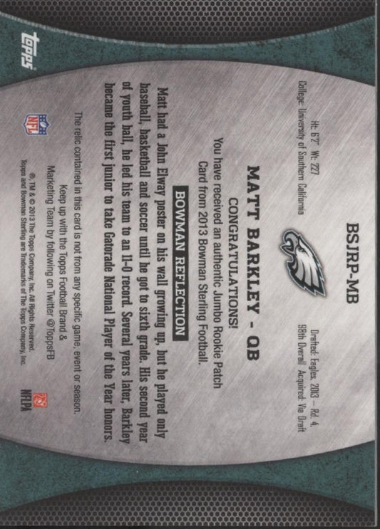 Matt Barkley 2013 Bowman Sterling Wave Refractor Swatch RC 159/171 #BSJRP-MB