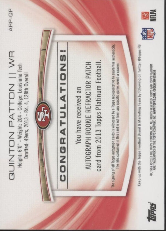 Quinton Patton 2013 Topps Platinum Swatch RC Auto 0210/1000 #ARP-QP