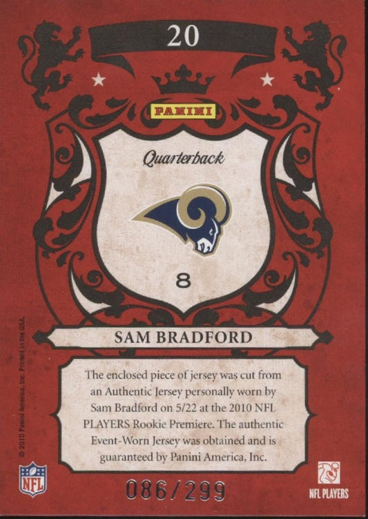 Sam Bradford 2010 Panini Crown Royale Royalty Swatch #20