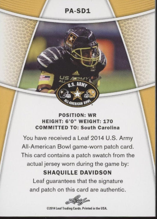 Shaquille Davidson 2014 Leaf US Army All American Bowl Swatch Auto 11/25 #PA-SD1
