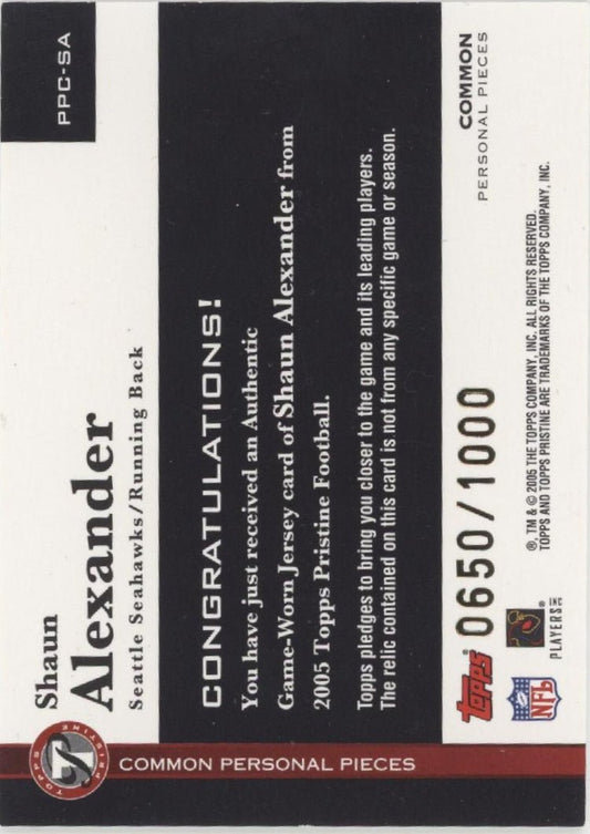Shaun Alexander 2005 Topps Pristine Common Personal Pieces Swatch 0650/1000