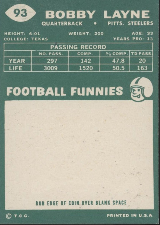 Bobby Layne 1960 Topps #93 Pittsburgh Steelers EX