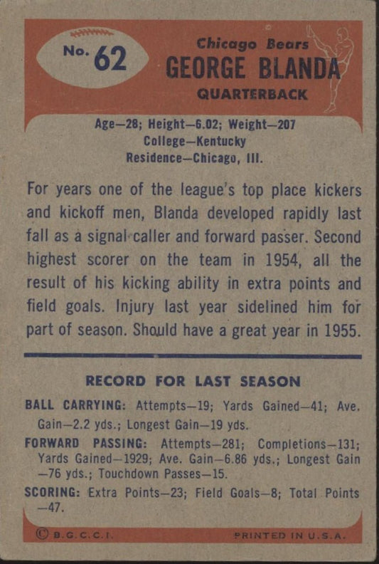 George Blanda 1955 Bowman #62 Chicago Bears VG
