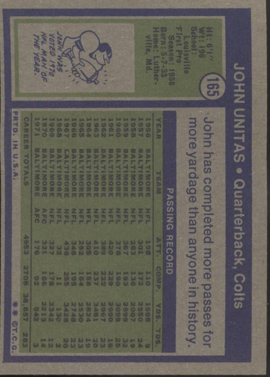 John Unitas 1972 Topps #165 Baltimore Colts EX