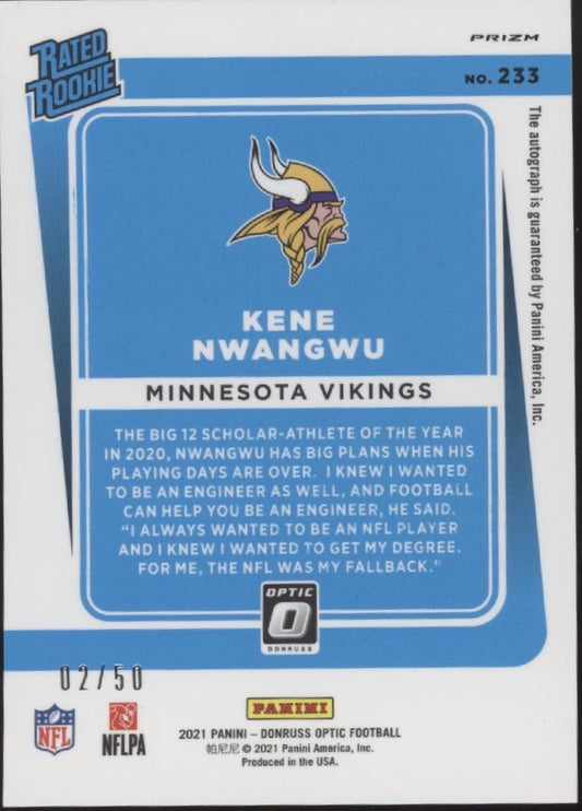 Kene Nwangwu 2021 Panini Donruss Optic Purple Stars Rated Rookie RC Auto 02/50