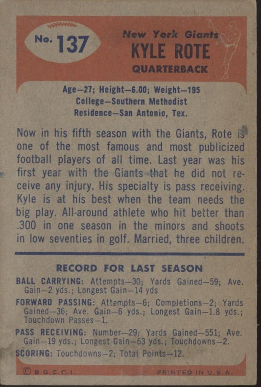 Kyle Rote 1955 Bowman #137 New York Giants VG-EX