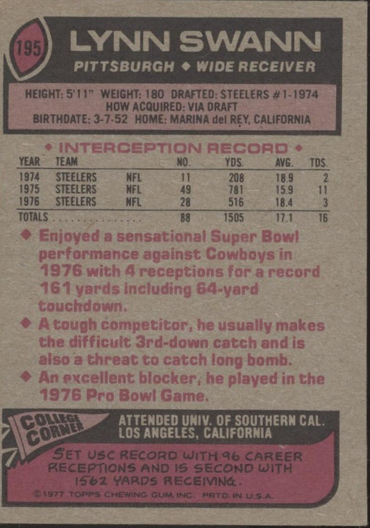 Lynn Swann 1977 Topps #195 Pittsburgh Steelers VG