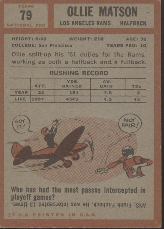 Ollie Matson 1962 Topps #79 Los Angeles Rams VG #2