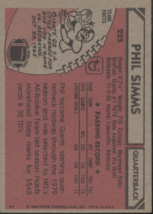 Phil Simms 1980 Topps RC #225 New York Giants EX #1