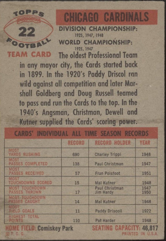 Chicago Cardinals 1956 Topps Team Card #22 VG