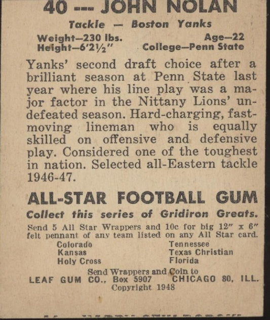John Nolan 1948 Leaf #40 Boston Yanks VG-EX