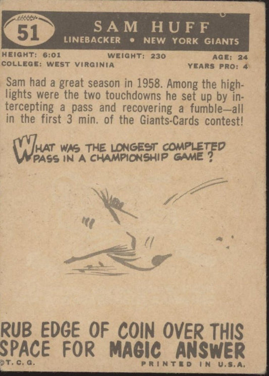 Sam Huff 1959 Topps RC #51 New York Giants VG-EX