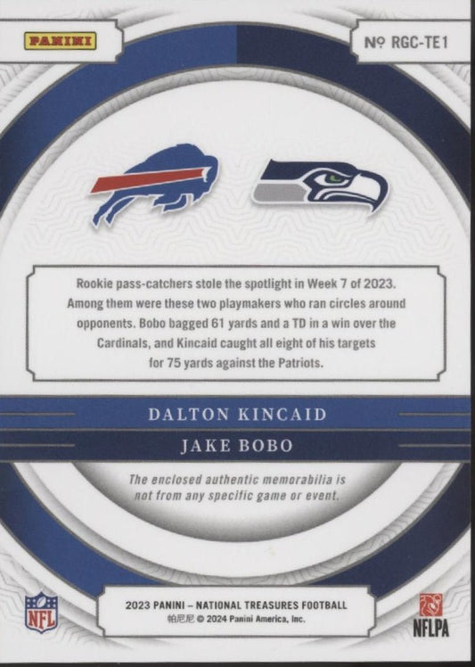Dalton Kincaid / Jake Bobo 2023 Panini National Treasures NFL Gear Swatch RC /49