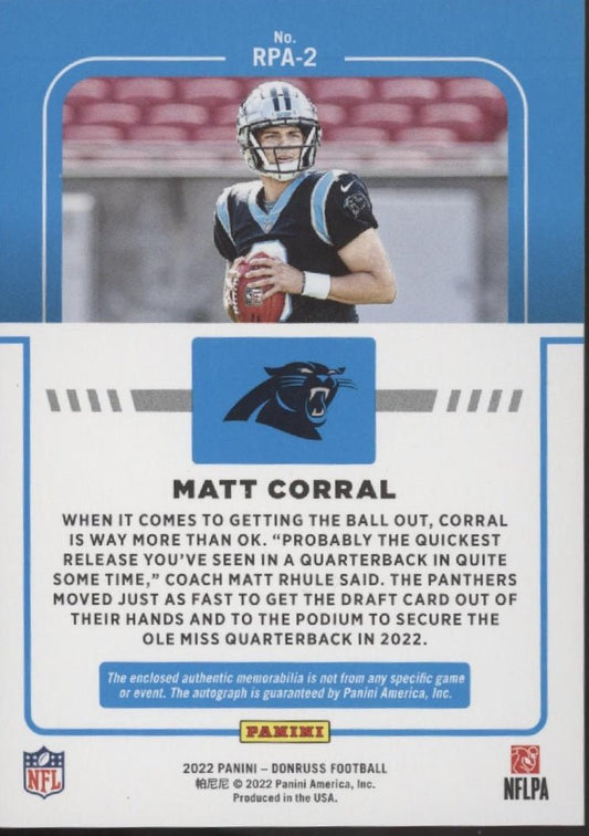 Matt Corral 2022 Panini Donruss Rookie Phenom Swatch RC Auto 43/99 #RPA-2