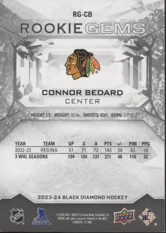 Connor Bedard 2023-24 Upper Deck Black Diamond Rookie Gems Red RC 085/100 #RG-CB