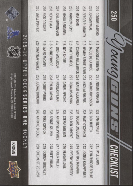 Connor McDavid / Sam Bennett 2015-16 Upper Deck Series 1 Young Guns RC #250
