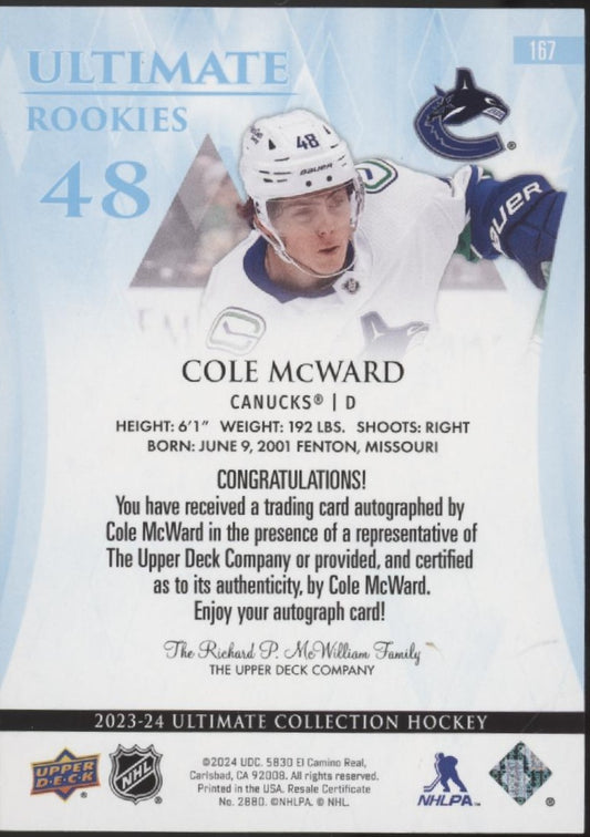 Cole McWard 2023-24 Upper Deck Ultimate Collection RC Auto 026/299 #167