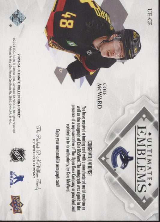 Cole McWard 2023-24 Upper Deck Ultimate Collection Emblems RC Auto #UE-CE