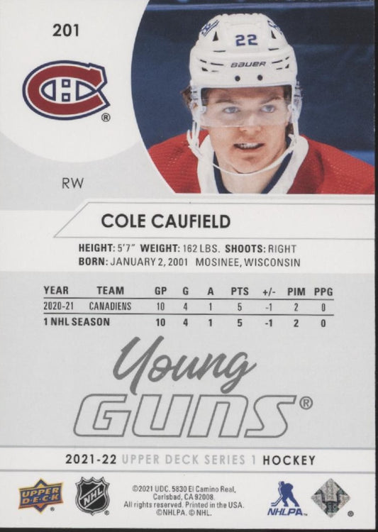 Cole Caufield 2021-22 Upper Deck Series 1 Young Guns RC #201
