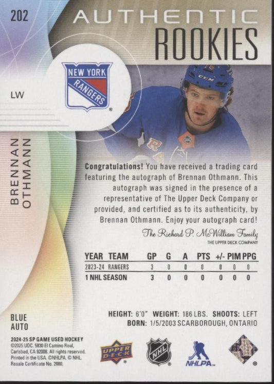 Brennan Othmann 2024-25 Upper Deck SP Game Used Authentic Blue RC Auto #202