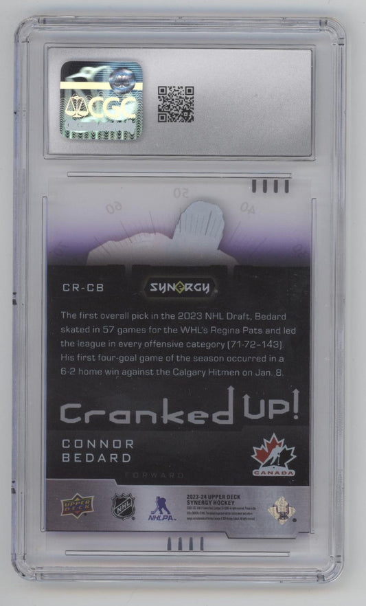Connor Bedard 2023-24 Upper Deck Synergy Cranked Up! Purple RC 153/199 CGC 8.5