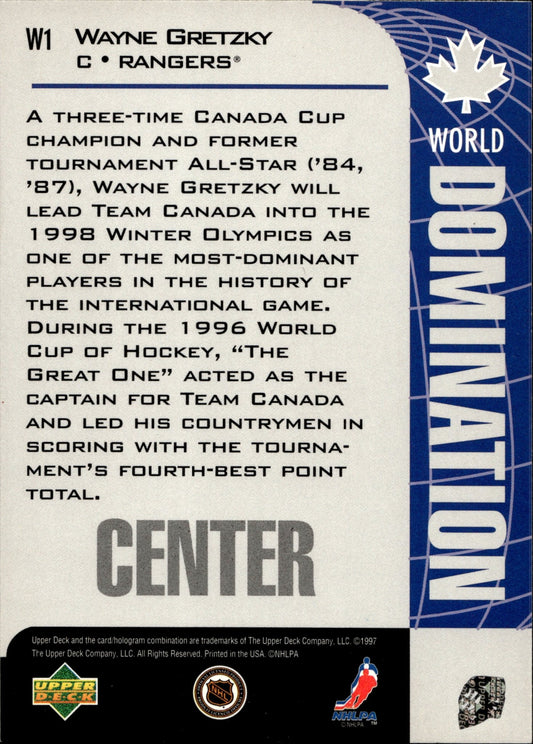 Wayne Gretzky 1997-98 Upper Deck Collector's Choice World Domination #W1