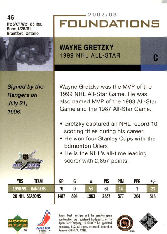 Wayne Gretzky 2002-03 Upper Deck Foundations #45